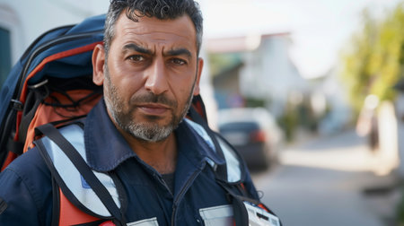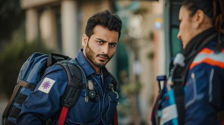 Middle Eastern Male Paramedic in Uniform with Medical Bag