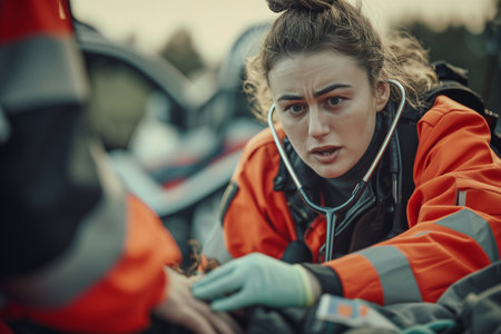 A paramedic administering CPR to a patient during an emergency response in a high-pressure scenario -