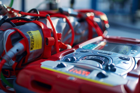 Closeup of a hospital room packed with various types of medical equipment, A close-up of the medical equipment inside an ambulance