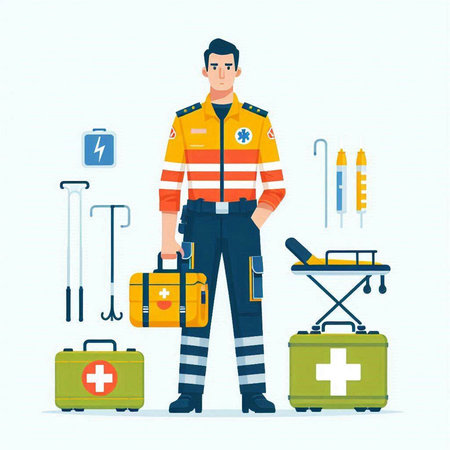 Vector illustration of a paramedic in uniform with first aid kit.