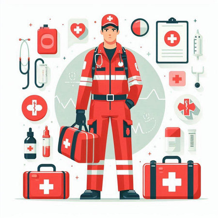 heroic paramedic in red uniform.