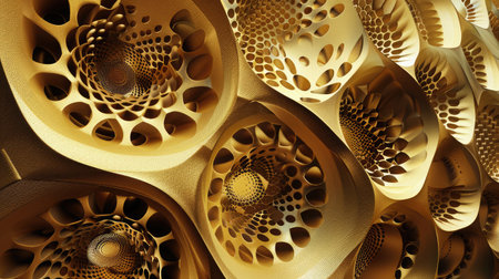 Abstract 3D golden geometric patterns with intricate designs, highlighting refinement.