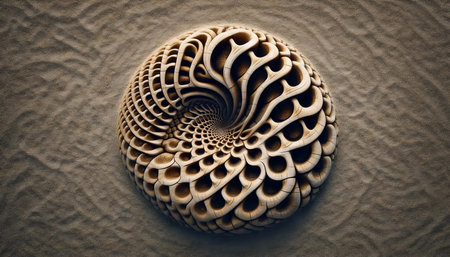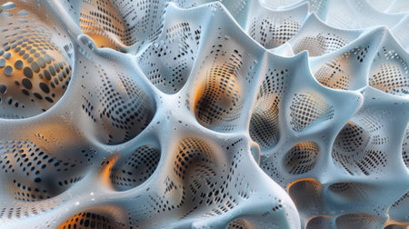 Layered showing intricate white organic cellular structure with layered hexagonal patterns and flowing curves...
