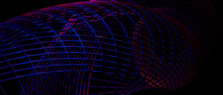 3d Illustration rows of neon textile line. Patter on a blue background, pattern. Geometric background, weave pattern.