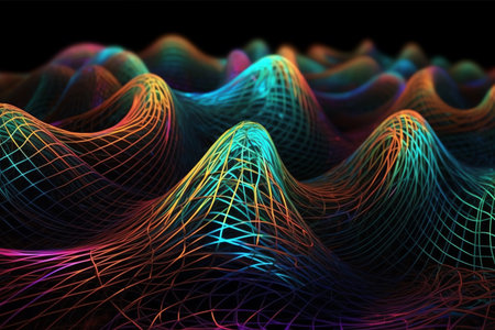 Abstract pattern with wireframe and nice colorful glow design 3d illustration wallpaper. Generative AI