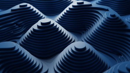 Abstract topographic landscape with layered contour lines in deep blue and dark navy tones, creating a sense of depth.