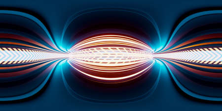 Neon lights and tunnel, 360 degree panorama, 3d rendering. Computer digital drawing.