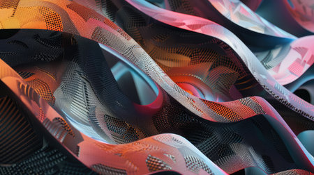 Immerse yourself in this futuristic fabric design showing intricate patterns and metallic hues. Perfect for modern art and tech enthusiasts. Generated AI.