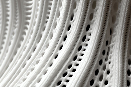 A detailed view showcasing the texture and pattern of a white fabric up close, Nano-engineered smart textile, AI Generated
