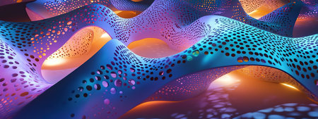 Abstract waved shape with holes background. Modern technology concept. 3D illustration