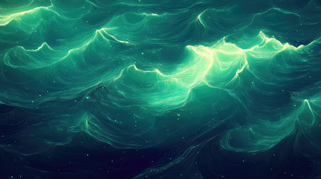 A lively sea scene featuring rolling waves with shimmering surfaces and smooth, rhythmic movement, capturing the ocean's vibrant energy and peaceful flow.