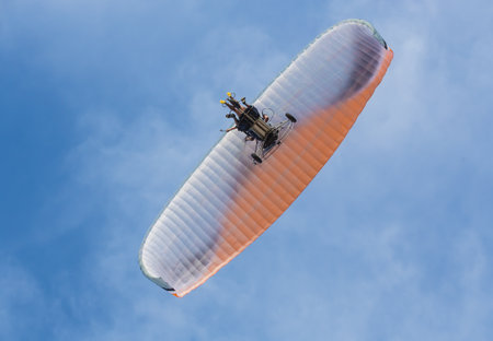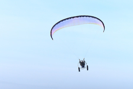 Moto paraglider low view of a motor para-glider blue sky