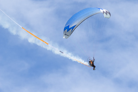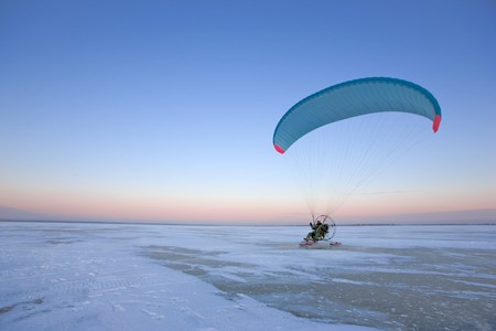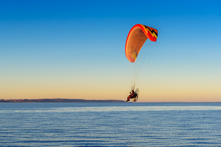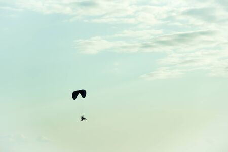 Flight on paraplane. Extreme sport.