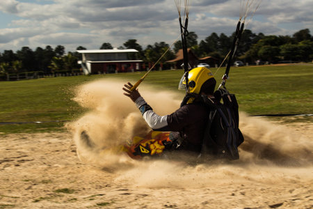 Parachutist landing on the sand