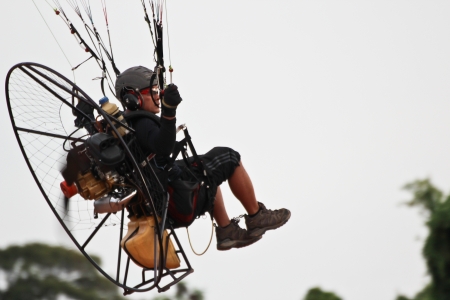Paramotor flying in the sky