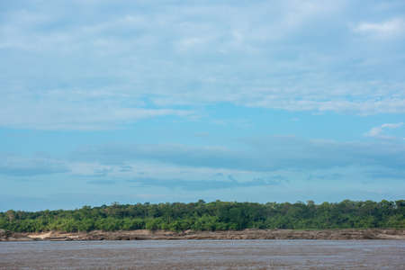 View for Javari River, the tributary of the Amazon River during low water season Amazonia.Selva on the border of Brazil and Peru. South America.