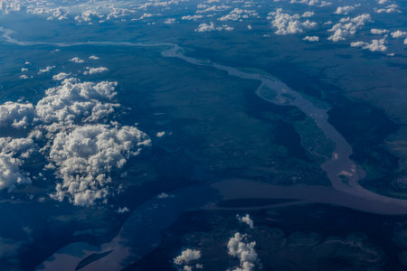 Manaus, Amazonas, Brazil: Top view of the river. Beautiful landscape from the window of the airplane.