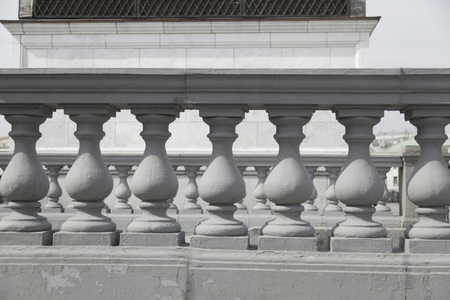 Detail of the stylish stone railings in an old Russian estate. street railings along the road. antique railing in peeling white paint