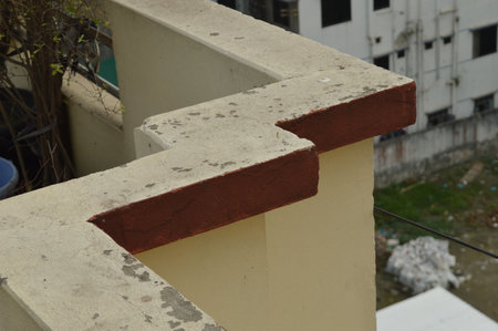 A close-up view of an ornate balcony railing showcasing intricate stonework and detailed craftsmanship against a vibrant red wall. Ideal for architectural themes.