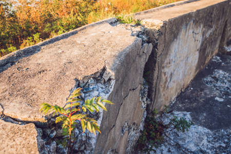 Photo of old rustic concrete bridge railing and details