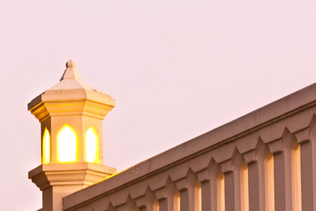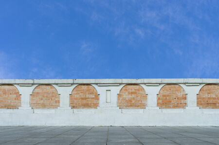 close up classic balcony concrete fence Portuguese style and blue sky background,