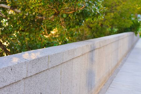 stone gray fence in the park, gray wall in thickets