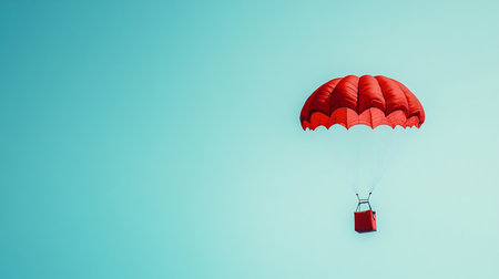 A parachutist gracefully descends with a bright red and yellow canopy, enjoying an exhilarating drop against a clear sky backdrop. The experience showcases the thrill of sky sports.