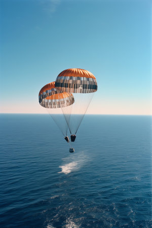 Generative AI : Parachute system for Orion Americas spacecraft deployed Digitally enhanced Elements of this image furnished by NASA