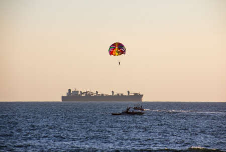 Myrtle Beach South Carolina US September 13, 2017 Beach paraglider and boat