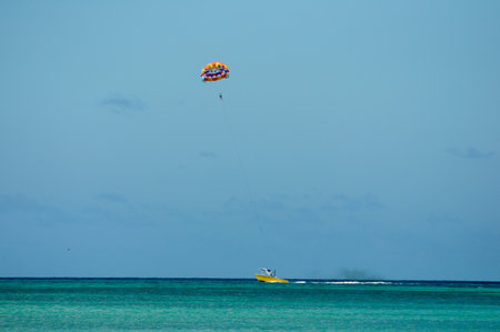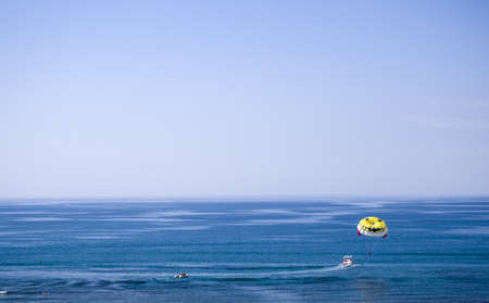 Stock image of parachuting over a sea, towing by a boat