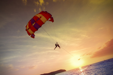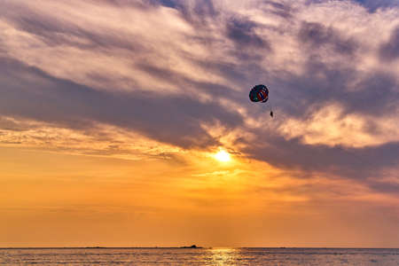 Flying by using parachuting at sunset,Phuket,Thailand.