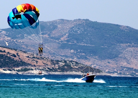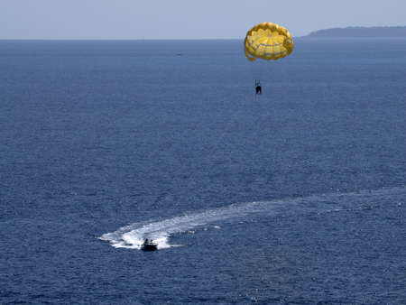 Parachuting at sea, Parasailing with a boat over the sea