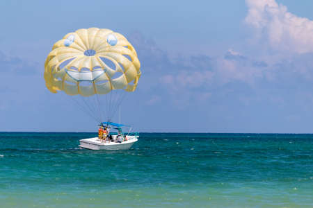Parasailing in Caribbean Sea, Cancun beach