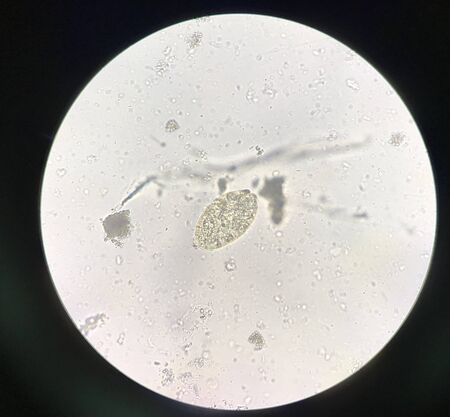 Egg of Ascaris lumbricoides (roundworm) in stool, analyze by microscope