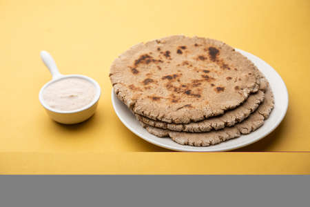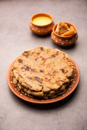 Sweet roti made out of rice flour, jaggery, and ghee. Gud ki roti. gur ki roti, jaggery Bhakri, meethi gud ki roti. Winter food. Copy space.