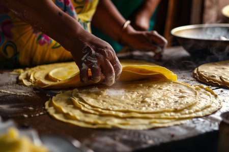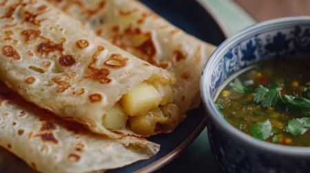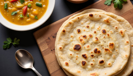 Delicious homemade chapati with bowl of dal and spoon, culinary delight. generated by ai