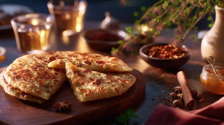 Delicious Parantha ghee. India wheat bread. Generate Ai