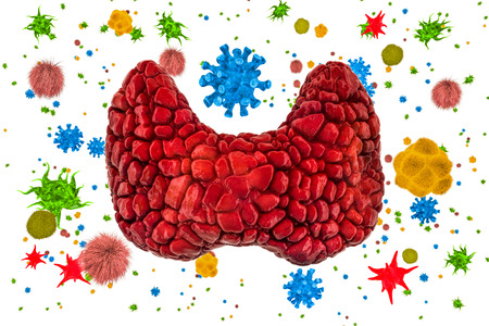 Thyroid gland with viruses and bacteria. Thyroid disease concept, 3D rendering isolated on white background