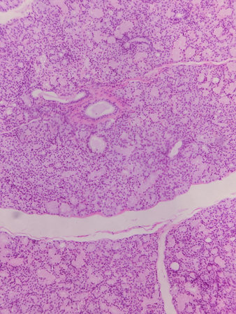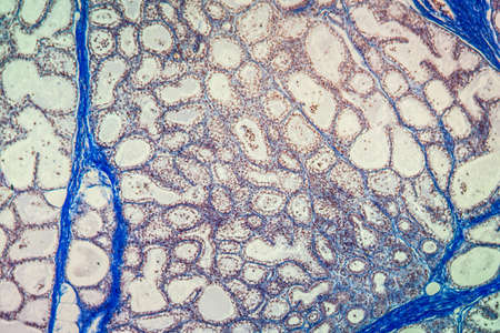 Showing Light micrograph of the Thyroid gland and Thymus gland human Child under the microscope for education in the laboratory.