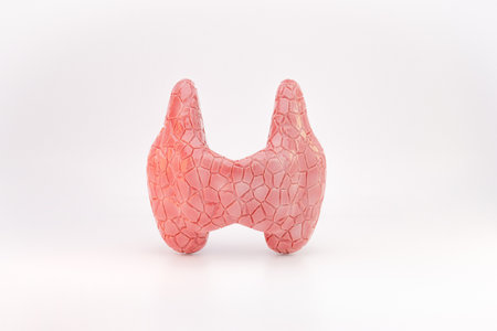 A detailed anatomical model of the human thyroid gland, a crucial endocrine organ, presented isolated on a clean white background.