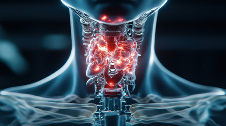 Abstract medical background with Human Body thyroid gland anatomy. 3d illustration