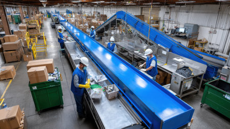 Automated sorting equipment operates efficiently in a busy distribution center.