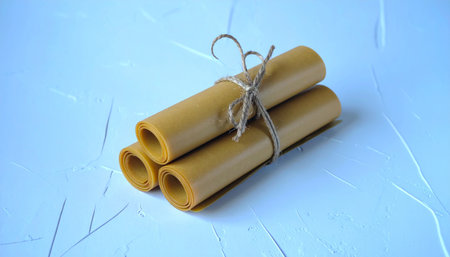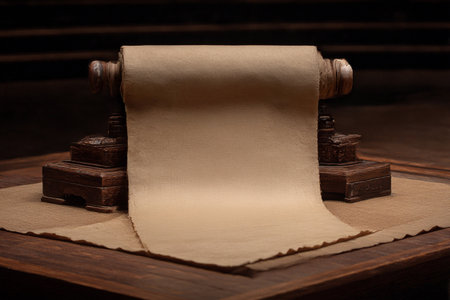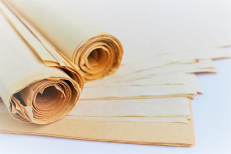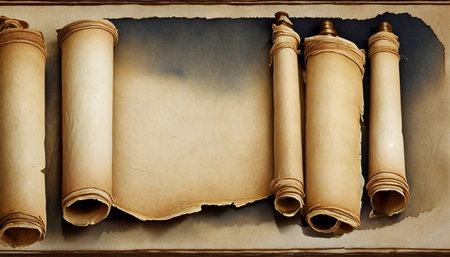 Explore the beauty of ancient scrolls featuring intricate writings. The rustic texture and warm tones evoke a sense of history and knowledge.