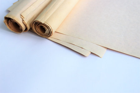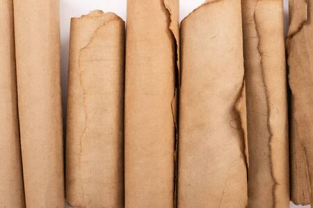 old parchment paper scroll sheet vintage aged or texture isolated on white background.