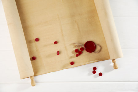 Parchment scroll for the to-do list on a red background. Glider, day planning, place for text and for entries. Copyspace. Old paper.