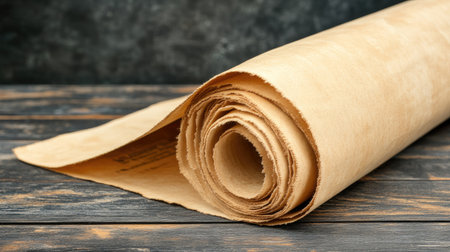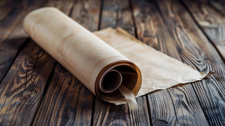Old paper scroll on a brown background. Vintage style toned picture, Old paper sheet a vintage aged original background, AI Generated