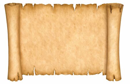 Old paper manuscript or papyrus scroll horizontal oriented isolated on white background.