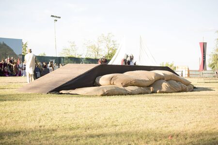 Quattro Castella,Reggio Emilia/Italy - July 26 2019 : medieval historical re-enactment of matilde di canossa, traditional games and jousting