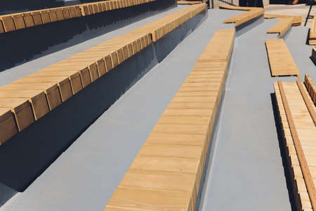 An empty bike stand shed in the city park during a pandemic. Meeting places without people. The photo was taken at night with artificial street lighting.