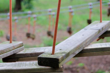 Rope town. Active family vacation in the open air. Elements of a rope town in the park. Rope town in the forest